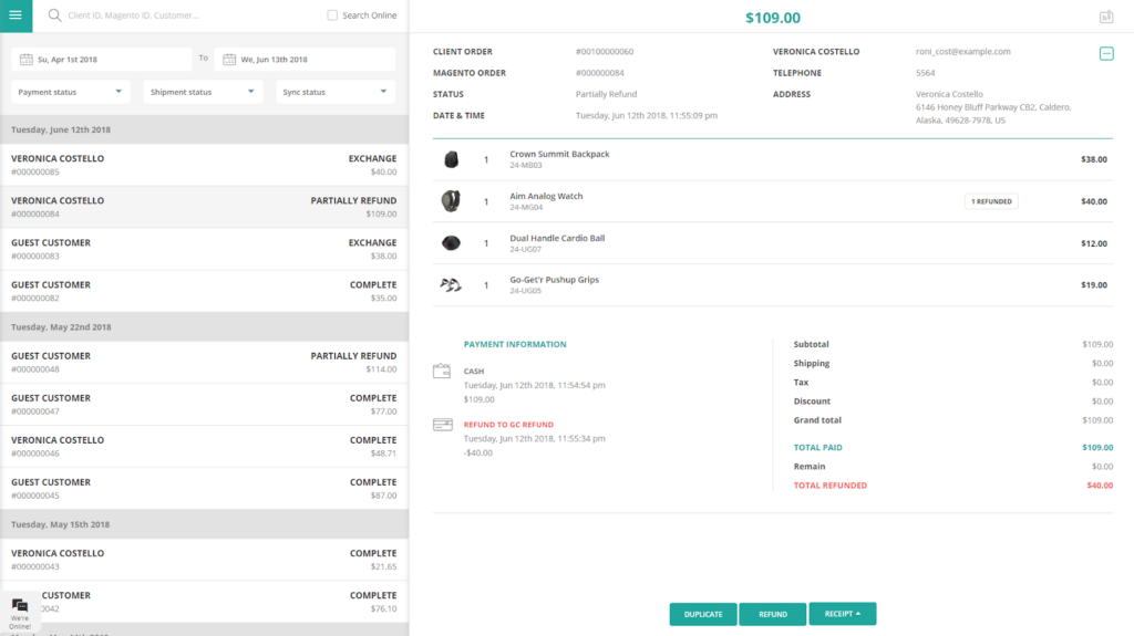 When it comes to order management, ACE Sales POS takes pride in the refund and exchange process. Employees can easily create a refund or exchange from the order list, which then will be updated in the system. This is also what YITH POS does not offer its users.